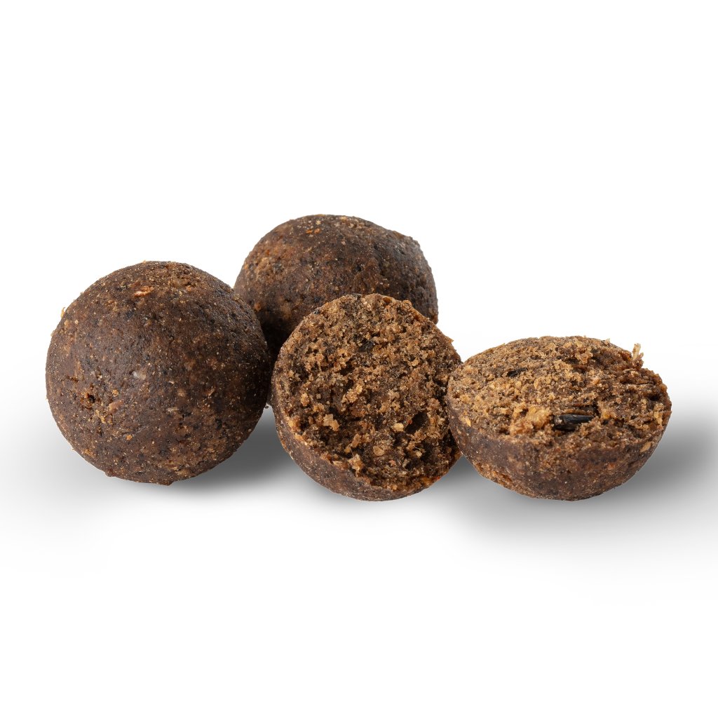 Toto boilies vychází z přirozených instinktů kaprů a staví na surovinách, které kapři nevyhodnocují rozumem, ale rozpoznávají instinktivně. Neobsahuje žádná přidaná aromata – síla spočívá v samotném složení a okamžitém potravním signálu, který se začne uvolňovat ihned po dopadu na dno.